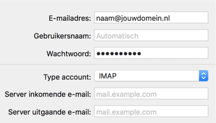 IMAP-server: jouwdomein.nl (je eigen domeinnaam)