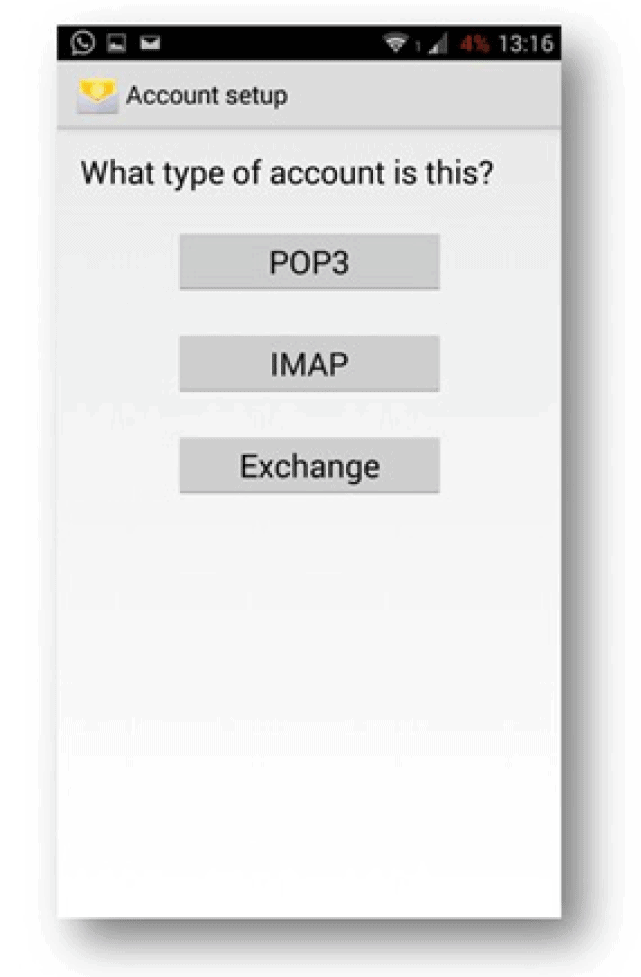 Stap 3. Kies in dit scherm voor POP of IMAP en klik op Volgende