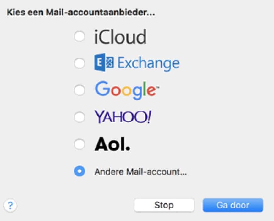 Even vooraf: deze handleiding gaat uit van protocol IMAP. IMAP en POP zijn twee verschillende instellingen die zorgen dat je e-mail programma e-mails ophaalt van de server en deze bezorgt in je inbox. Met IMAP staan alle mails ook op de server, evenals alle mappen met inhoud en hoef je je niet druk te maken over backups. Met POP3 staan alle mails en mappen alleen op de eigen computer en ben je zelf verantwoordelijk voor backups. Voor andere apparaten en de webmail zijn de mappen met mails dan niet bereikbaar. Wil je toch POP3 kies dan als poort 995 in plaats van 993.